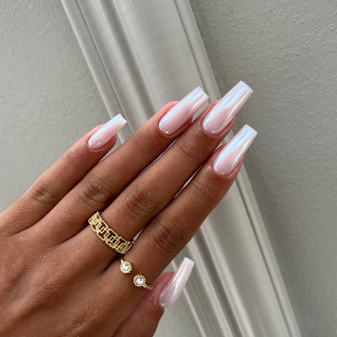 En suite, je passe ma poudre chrome et je remets une touche de top coat pour protéger la poudre.